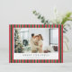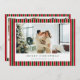 Desee a su familia Felices Fiestas con una tarjeta de Navidades de fotos de Navidades rayados rojos y verdes en un diseño paisajístico que muestra a su familia en la parte delantera sobre un patrón de rayas de Navidades rojas y verdes de color agua, y una parte trasera con 3 fotos familiares y una nota editable y un lindo oso oso de peluche Navidades. Estas tarjetas de vacaciones horizontales de Navidades a rayas de dos lados son la manera perfecta de compartir las alegrías de las vacaciones y los deseos de una feliz temporada navideña. La colección BERNARD incluye una foto de su familia con un mensaje Happy Holidays on front and the year en un clásico estilo serif in green. Se incluye un reverso opcional con tres fotos familiares y una nota, con un patrón de rayas rojas y verdes. En la parte posterior de la tarjeta de vacaciones acuarela de rayas rojas y verdes se incluye un oso de peluche Navidad lindo con orientación horizontal.