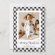 Festividad foto de manta de búfalo blanco y negro Festividad de la tarjeta navideña Merry con nieve cayendo y estrellas sobre un fondo de manto de búfalo en el frente y un fondo de búfalo negro y blanco en la parte de atrás.
