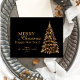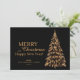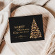 La moderna tarjeta negra de vacaciones es el sencillo y perfecto saludo de vacaciones. El moderno diseño clásico cuenta con elegantes remolinos y floridos caprichosos de oro magnífico. Personalice la parte delantera de la tarjeta con el nombre de su familia y el año.