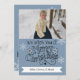 Texto negro que dice "Te deseamos una Feliz Navidad" delante y "¡y un Feliz Año Nuevo!" detrás con un fondo azul marino, copos de nieve blancos y ciervo de silueta, y áreas donde puedes agregar tu nombre familiar y foto en una tarjeta de felicitación de vacaciones para Navidades ¡seguro que quieres mandar a familia y amigos!