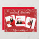 Esta tarjeta de Navidades de fotos muestra tres fotos de chicas con "Feliz Navidad" en rojo como fondo blanco. personalizado con su nombre y año.