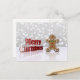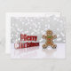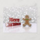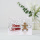 Delicioso y elegante ilustracion de Navidades con un hombre de pan de jengibre decorado y un saludo 3D metálico rojo sobre un fondo de bokeh glamuroso.