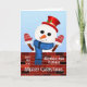 Desee una Feliz Navidad a su madre y padre. Celebra la temporada de vacaciones con esta carta de Navidades deliciosa que muestra a un simpático muñeco de nieve junto a una pared decorada con alegres tiza escrita. Vestido con un gorra y guantes rojos, el muñeco de nieve le da un toque divertido a sus saludos festivos.