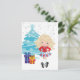 Esta adorable tarjeta de vacaciones con temática de danza irlandesa presenta a una bailarina rubia adorable con un vestido solo azul y rojo bailando en un maravilloso país invernal con nieve, un árbol de Navidad y regalos. Algunos gráficos de MUJKA.