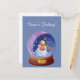 Ahorre en franqueo esta temporada navideña enviando algunos saludos navideños con postales. Perfecto para difundir algunas vacaciones animando a tu lista de correo. Excelente para empresas y contratistas independientes. Personalice fácilmente el mensaje en la parte posterior de esta tarjeta con su propio saludo personalizado. La parte delantera de la tarjeta incluye un ilustracion de un globo aerostático de invierno con un muñeco de nieve dentro contra un fondo azul claro. Cambia fácilmente el mensaje "¡Saludos de temporada!" que aparece en la parte superior de esta tarjeta.