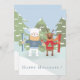 Adorable tarjeta plana de Navidad para niños con un oso polar y su amigo reno preparándose para ir a esquiar. Personalízala con tu propio texto y la firma de tu familia.