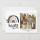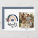 Una tarjeta fotográfica de vacaciones tan linda con arcoiris azul y azul canto con un brote de pino y bayas huecas. Tan único. Personaliza tu elección de foto.