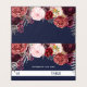 Las Tarjetas de Tent Place Boda de la Marina Fall Marsala - con fondo azul marino con varias peonías, rosas y otros elementos florales en tonos de Marsala, burdeos, rosa rubí, gris y más. Vea la colección coincidente de esta página para completar la búsqueda del evento.
