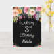 Tarjeta negra de cumpleaños número 3 con flores ac