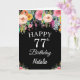 Tarjeta negra de cumpleaños número 77 con flores florales de acuarela con nombre y edad personalizados. Para una personalización adicional, haga clic en el botón "Personalizar" y use nuestra herramienta de diseño para modificar esta plantilla.