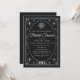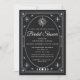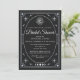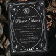 ¡Agrega un toque de magia a tu despedida de soltera! Esta invitación presenta un diseño inspirado en el tarot con un marco ovalado elegante, un sol y una luna radiantes en plateado sobre un fondo negro. ¡Perfecto para una celebración tan encantadora como la novia! POR FAVOR, TENGO EN CUENTA: El diseño en esta invitación NO ES HOJA DE ORO REAL y se imprime en colores planos.