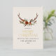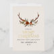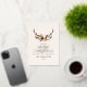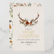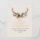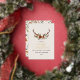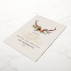 Tarjeta de Navidad de terracota negra floral botánico elegante ciervo. Detalles de tipografía de oro, plata y rosa reales.