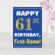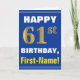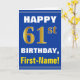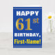 Tarjeta Negrita, azul, falso oro 61º cumpleaños con tarjet