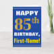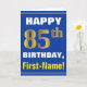 Tarjeta Negrita, azul, falso oro 85º cumpleaños con tarjet