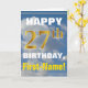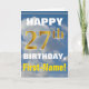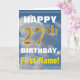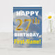 Este sencillo diseño de tarjetas de felicitación con temática de cumpleaños presenta un cálido deseo de cumpleaños como "¡FELIZ 27 cumpleaños, nombre!" en la parte delantera, en negrita sobre un fondo que representa un cielo azul con nubes blancas y grises. El número de cumpleaños tiene un aspecto de color falso/imitación dorado. El nombre en la parte delantera se puede personalizar. El interior incluye un mensaje de cumpleaños de personalizable. Una tarjeta de felicitación como esta podría ser una manera divertida de entregar deseos de cumpleaños a alguien que está celebrando su vigésimo séptimo cumpleaños. [~Z0000284]
