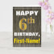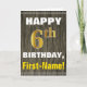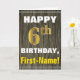 Tarjeta Negrita, Faux Wood, Faux Gold 6Cumpleaños + Nombre
