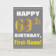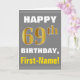 Tarjeta Negrita, gris, oro falso 69º cumpleaños con tarjet