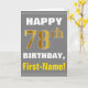 Tarjeta Negrita, gris, oro falso 78º cumpleaños con tarjet