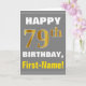 Tarjeta Negrita, gris, oro falso 79º cumpleaños con tarjet