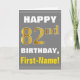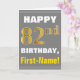 Tarjeta Negrita, gris, oro falso 82º cumpleaños con tarjet