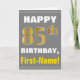 Tarjeta Negrita, gris, oro falso 85º cumpleaños con tarjet