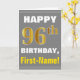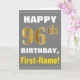 Tarjeta Negrita, gris, oro falso 96º cumpleaños con tarjet