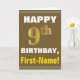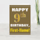 Tarjeta Negrita, marrón, falso oro 9 cumpleaños con tarjet