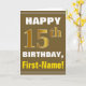 Tarjeta Negrita, marrón, oro falso 15 cumpleaños con tarje