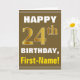 Tarjeta Negrita, marrón, oro falso 24 cumpleaños con tarje