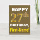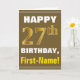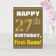 Tarjeta Negrita, marrón, oro falso 27 cumpleaños con tarje
