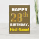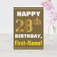 Tarjeta Negrita, marrón, oro falso 28 cumpleaños con tarje