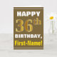 Este sencillo diseño de tarjetas de felicitación con temática de cumpleaños presenta un cálido deseo de cumpleaños como "¡FELIZ 36º CUMPLEAÑOS, nombre!" en la parte delantera, en negrita con un fondo de color marrón. El número de cumpleaños tiene un aspecto de color falso/imitación dorado. El nombre en la parte delantera se puede personalizar. El interior incluye un mensaje de cumpleaños que se puede personalizar. Una tarjeta de felicitación como esta podría ser una manera divertida de entregar deseos de cumpleaños a alguien que está celebrando su 36º cumpleaños. [~Z0000281]