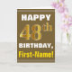 Este sencillo diseño de tarjetas de felicitación con temática de cumpleaños presenta un cálido deseo de cumpleaños como "¡FELIZ CUMPLEAÑOS 48, nombre!" en la parte delantera, en negrita con un fondo de color marrón. El número de cumpleaños tiene un aspecto de color falso/imitación dorado. El nombre del frente puede ser personalizado. El interior incluye un mensaje de cumpleaños que se puede personalizar. Una tarjeta de felicitación como esta podría ser una manera divertida de entregar deseos de cumpleaños a alguien que está celebrando su cumpleaños cuarenta y ocho. [~Z0000281]