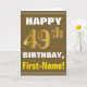Tarjeta Negrita, marrón, oro falso 49º cumpleaños con tarj