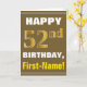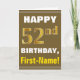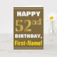 Tarjeta Negrita, marrón, oro falso 52 cumpleaños con tarje