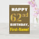 Tarjeta Negrita, marrón, oro falso 62 cumpleaños con tarje