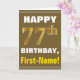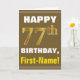 Tarjeta Negrita, marrón, oro falso 77º cumpleaños con tarj
