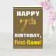 Este sencillo diseño de tarjetas de felicitación con temática de cumpleaños presenta un cálido deseo de cumpleaños como "¡FELIZ 7° cumpleaños, nombre!" en la parte delantera, en negrita con un fondo de color marrón. El número de cumpleaños tiene un aspecto de color falso/imitación dorado. El nombre del frente puede ser personalizado. El interior incluye un mensaje de cumpleaños que se puede personalizar. Una tarjeta de felicitación como esta podría ser una manera divertida de entregar deseos de cumpleaños a alguien que está celebrando su séptimo cumpleaños. [~Z0000281]