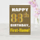 Tarjeta Negrita, marrón, oro falso 88º cumpleaños con tarj