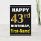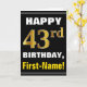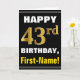 Tarjeta Negrita, negro, falso oro 43 cumpleaños con tarjet