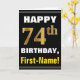 Tarjeta Negrita, negro, oro falso 74º cumpleaños con tarje