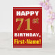 Tarjeta Negrita, rojo, falso oro 71º cumpleaños con tarjet