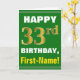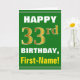 Tarjeta Negrita, verde, falso oro 33 cumpleaños con tarjet