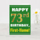 Tarjeta Negrita, verde, falso oro 73 cumpleaños con tarjet