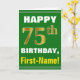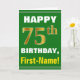 Tarjeta Negrita, verde, falso oro 75 cumpleaños con tarjet