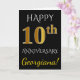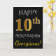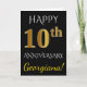 Tarjeta Negro, Dorado Falso Aniversario de Bodas 10 + Nomb
