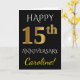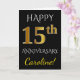 Tarjeta Negro, Dorado Falso Aniversario de Bodas 15 + Nomb