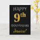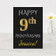 Tarjeta Negro, Dorado Falso Aniversario de Bodas N°9 + Nom