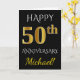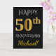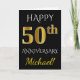 Tarjeta Negro, Falso Oro 50 Aniversario de Boda + Nombre