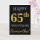 Tarjeta Negro, Falso Oro 65 Aniversario de Boda + Nombre